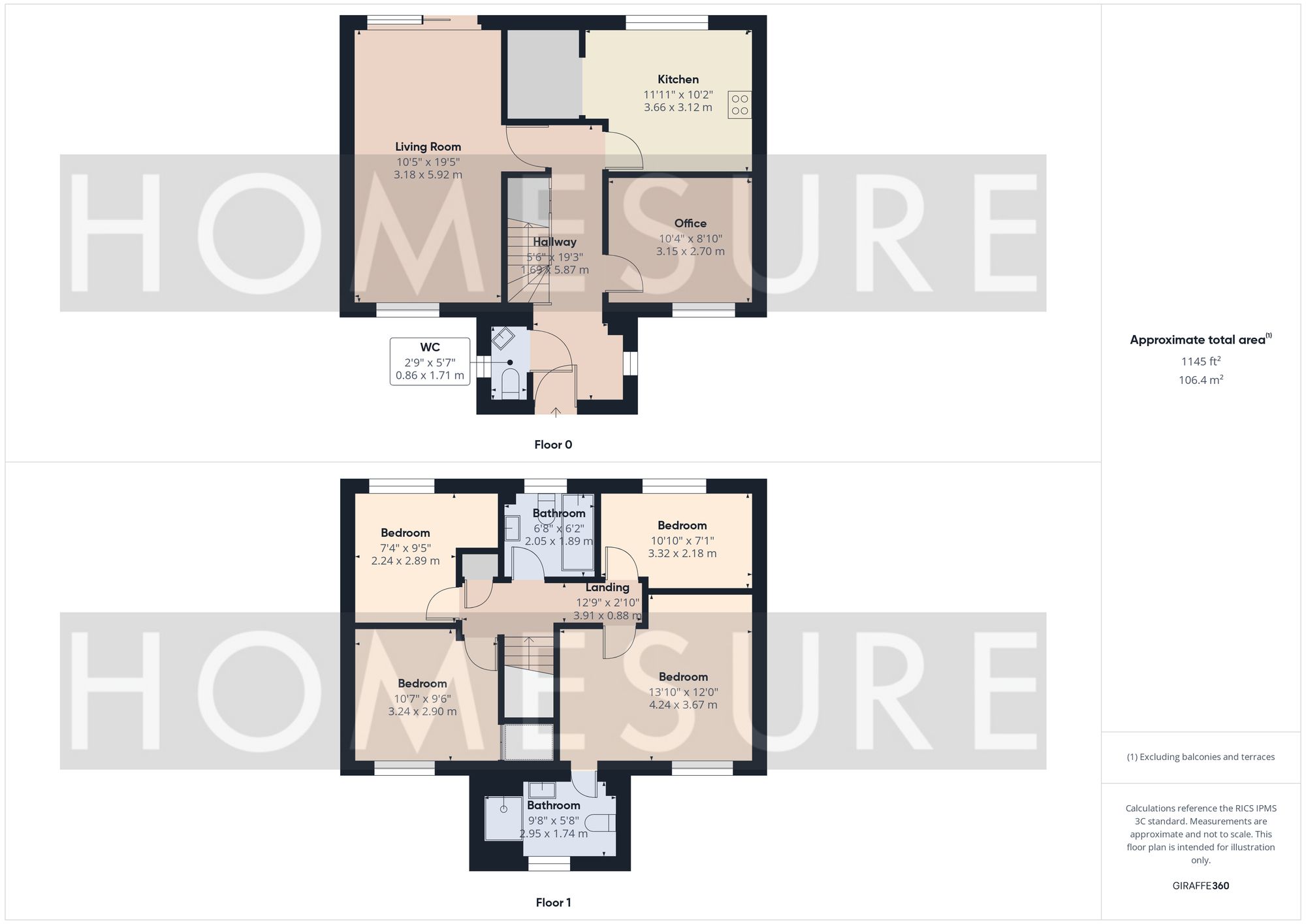 9' 6" x 10' 8" (2.90m x 3.24m)