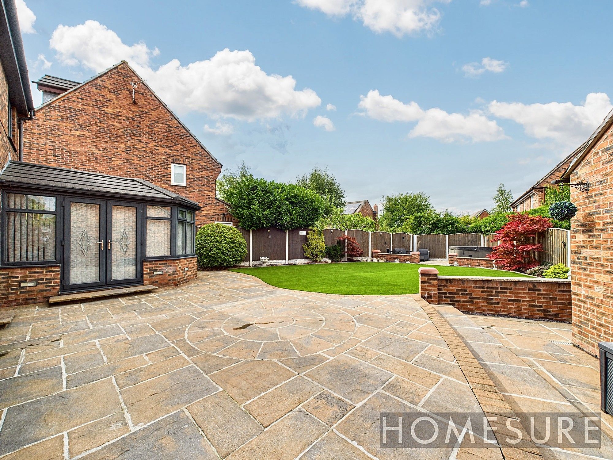 The standout feature of this home is the exceptional outdoor space. Enjoy a landscaped garden with a lush lawn, decorative pathways, and mature shrubs, all designed for both beauty and low maintenance. The spacious patio area and stylish outdoor seating make it perfect for gatherings or unwinding in the fresh air. Bi-fold doors and a bright conservatory create seamless indoor-outdoor living, ideal for modern family life. Off-road parking, a double garage, and a charming brick exterior complete the package, making this property as practical as it is attractive. This is a fantastic opportunity to secure a home that truly has it all – space, style, and superb outdoor living.