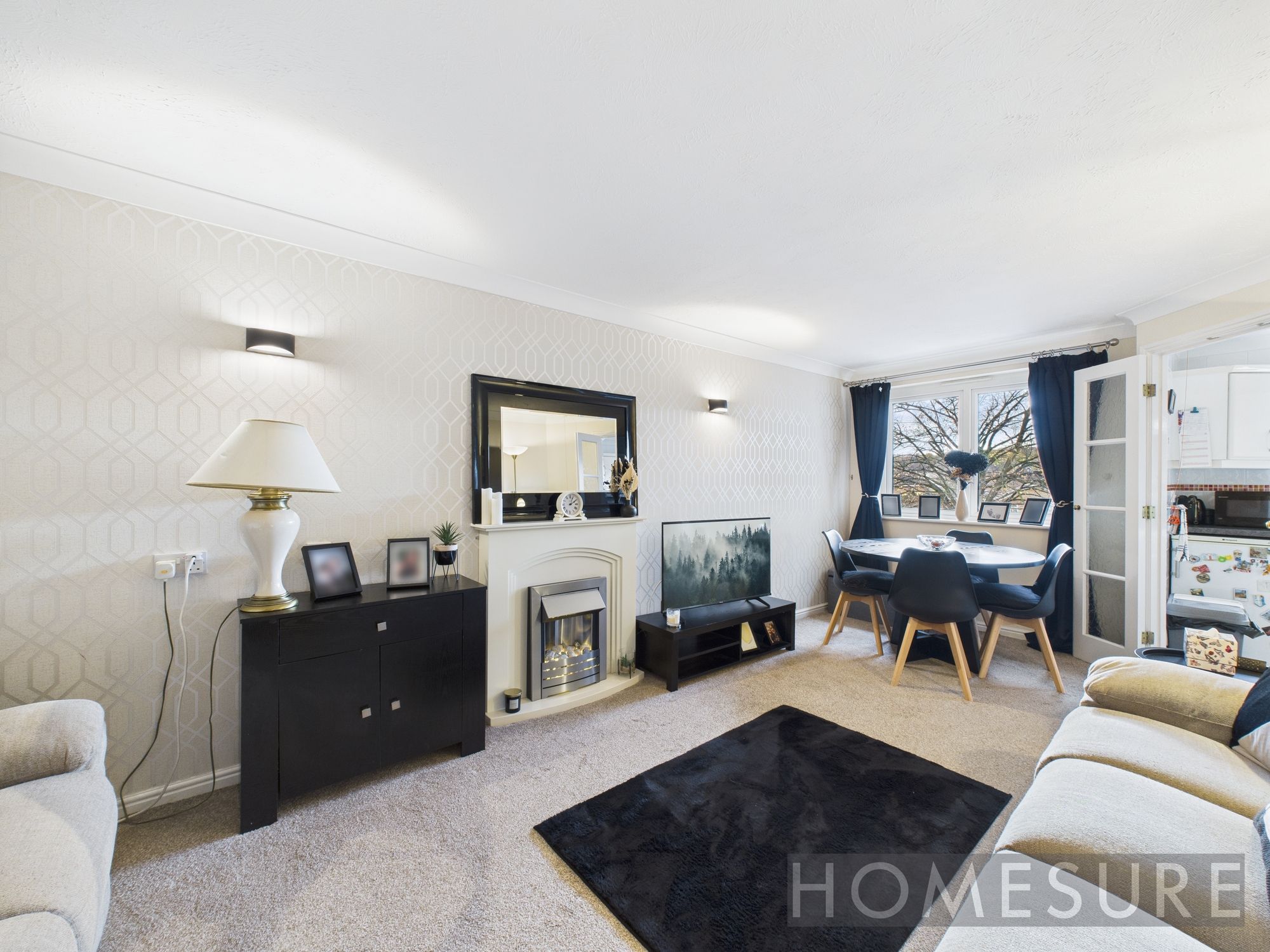 Step inside this stylish one-bedroom flat and discover a welcoming space filled with natural light and modern touches. The open plan living area is perfect for both relaxing and entertaining, featuring a cosy fireplace, spacious seating, and a dining area with large windows. The sleek kitchen is fitted with modern units, integrated oven, and plenty of counter space, making meal times a breeze.